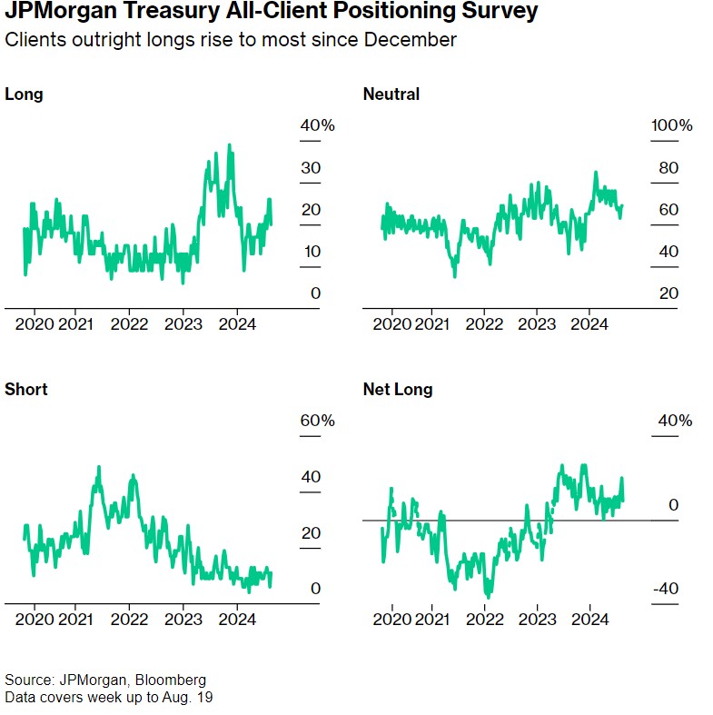 摩根大通国债客户仓位调查——客户完全多头仓位在8月升至去年12月以来最高
