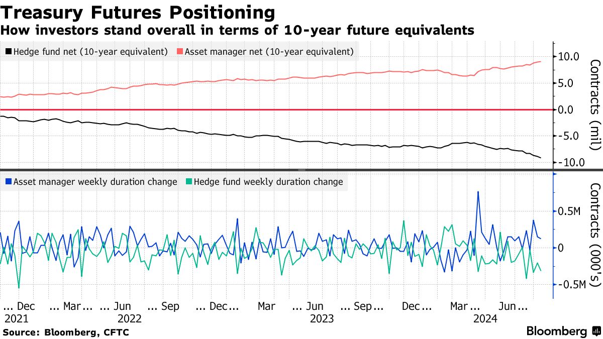 但是,对冲基金可能认为当前美国经济和劳动力市场仍然韧性十足,美联储不会像市场所预期的那样大幅降低利率,而是采取渐进式的缓慢降息举措,他们因此增加空头头寸,押注长期债券将在某一段时间出现价格下跌。