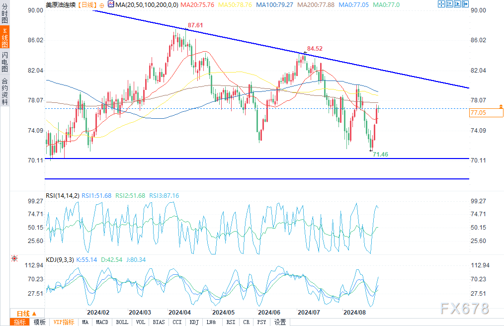周二(8月27日)欧盘时段,受中东紧张局势升级和利比亚石油生产可能中断引发的供应担忧推动,WTI原油期货下跌。此前,油价连续三天上涨。