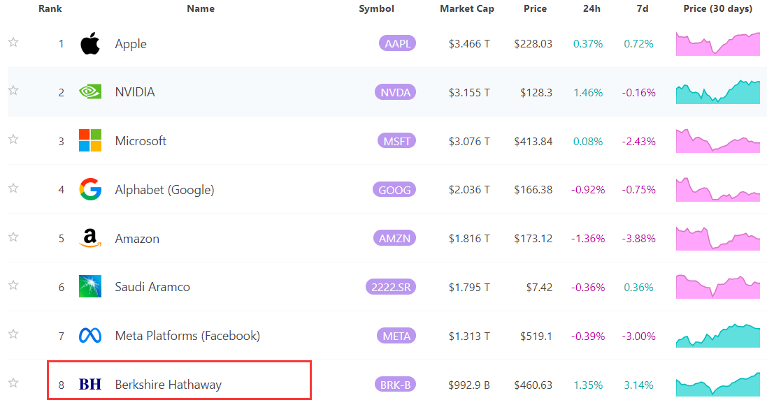 ①截至周二收盘,伯克希尔哈撒韦公司的总市值已接近9930亿美元,距离跻身“万亿美元市值俱乐部”仅差最后的70亿美元;②如果接下来,这一门槛能够被迅速迈过,伯克希尔将有望成为全球第九家市值达到过1万亿美元的公司。