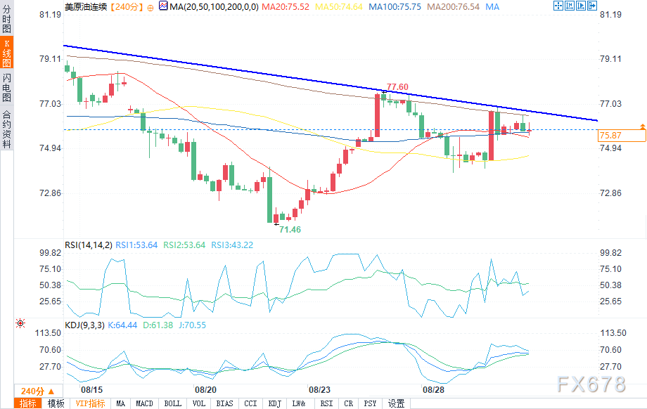 技术分析:周五预期交易区间75.40美元-78.50美元