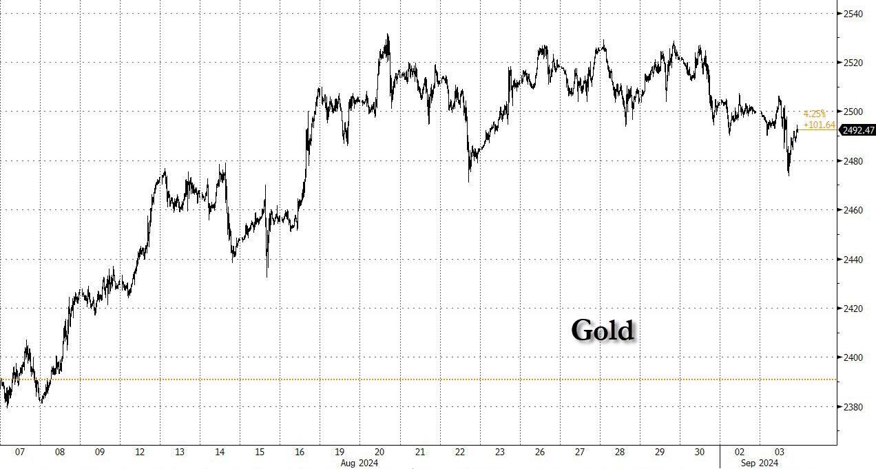 就连2024年表现最为出色的大宗商品资产之一——黄金也未能幸免于周二的大跌,在过去两周的大部分时间里都在2500美元上方交投后,黄金隔夜又跌回了该关口下方。