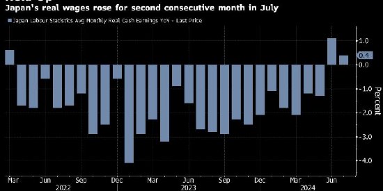 日本工人实际薪资连续第二个月上升,这一结果将使日本央行保持在今年晚些时候可能再次加息的轨道上。