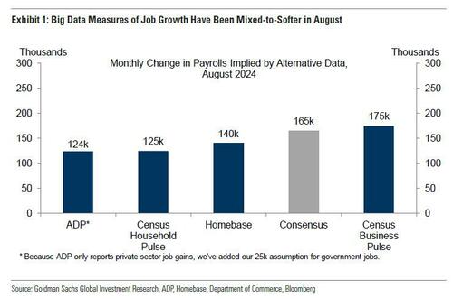 或许正是上述多个美国就业先行指标多数不佳的影响,才导致高盛对于今晚的非农预估相较市场共识预期偏低。高盛跟踪的各项先行指标显示的非农中位数仅为新增13.3万人,尽管其自身的预测(15.5万人)要略高于这一数字。