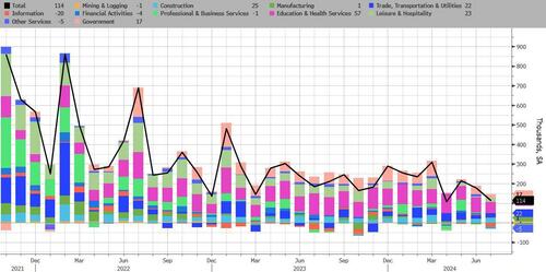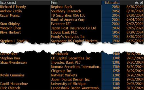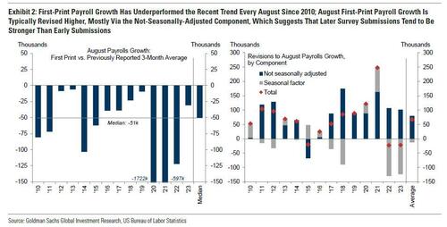而从季节性角度看,过往8月非农数据有一个较为不好的现象——财经网站Forexlive分析师Adam Button就指出,在过去23年里的8月报告中,修正前的8月非农数据(也就是非农夜当天公布的初步数据)有17年是低于预期的。此后,8月份的非农数据往往会在多轮修正中被上修。根据统计,8月最初非农数据的疲软往往体现在许多相同的行业——信息、专业服务、制造业和零售业。经济学家警告称,周五这些行业的情况值得留意。