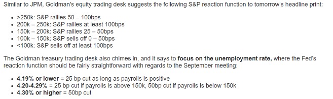 与摩根大通类似,高盛的股票交易部门也对非农影响进行了不同情境的预估。该行的预测如下: