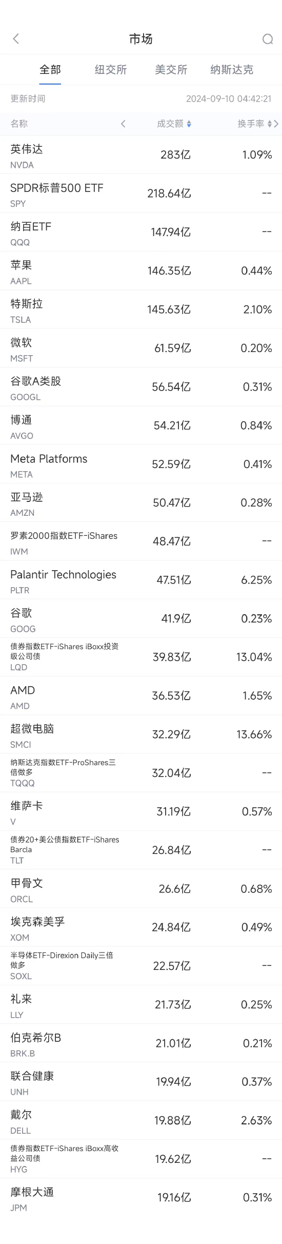 FXTM富拓集团资讯9月9日美股成交额前20:苹果推出首款AI手机,但国行版暂不支持AI功能