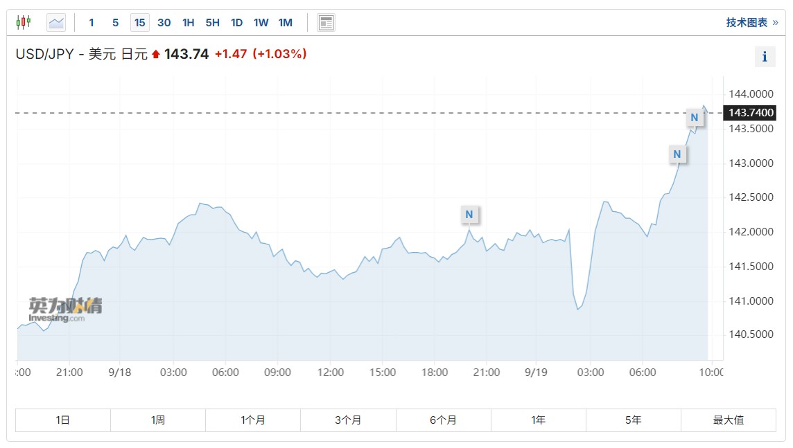由于鲍威尔在利率决议后的新闻发布会上表示不急于放松政策,日元抹去了美联储决定将基准利率下调50个基点所引发的涨幅。日元兑美元汇率一度上升至140.45,截至发稿,该汇率徘徊在143.74附近。