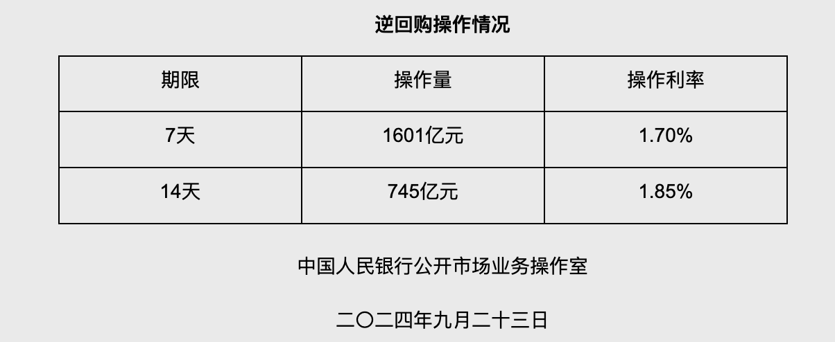 央行今日进行745亿元14天期逆回购操作,中标利率为1.85%,此前为1.95%;进行1601亿元7天期逆回购操作,中标利率为1.70%,与此前持平。因今日有1387亿元7天期逆回购到期,实现净投放959亿元。