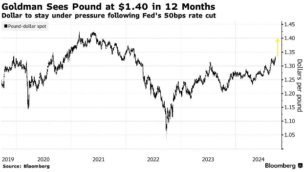 由于对美元的新看法,高盛现在更加看好英镑,预计12个月后英镑将从之前的1.32美元升至1.40美元。这一水平上一次出现是在2021年,也是华尔街的最高预测水平之一。