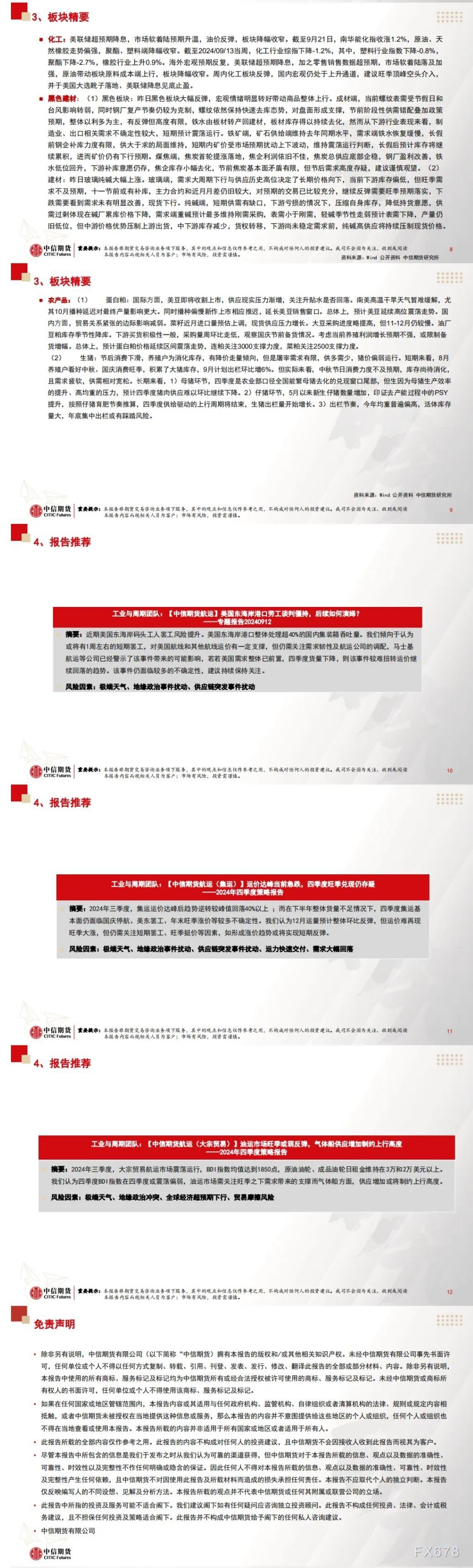 FXTM富拓集团资讯中信期货9月25日晨报:国新办发布会大超预期,商品普涨