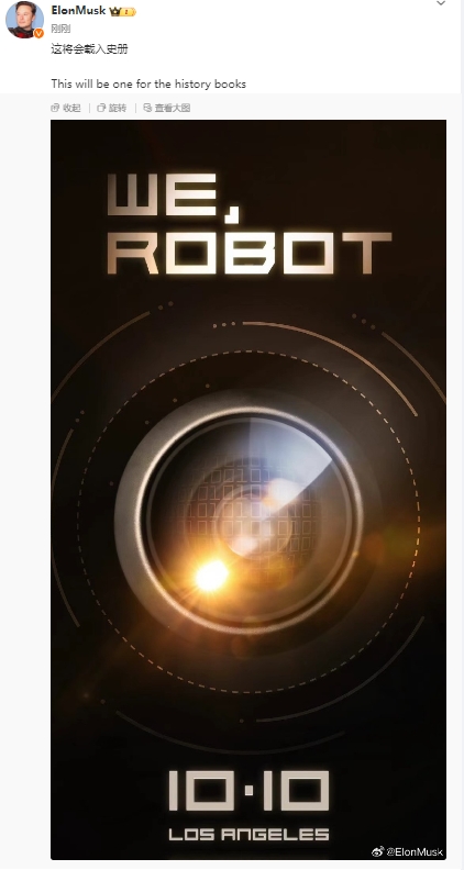 预告Robotaxi发布:加州时间10月10日。马斯克发布