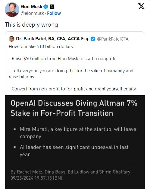 FXTM富拓集团资讯奥特曼将获OpenAI的7%股份,马斯克怒评:大错特错!