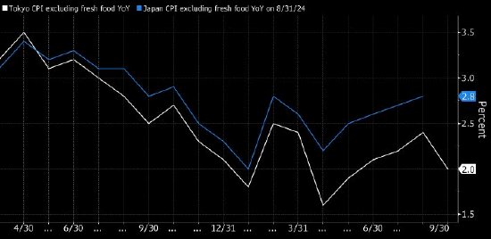 日本内务省周五公布的数据显示,9月份东京不包括生鲜食品的消费者价格上涨2.0%,涨幅为5月以来最小。这一结果符合经济学家的预测中值。一项剔除了能源价格的指标则维持在1.6%。