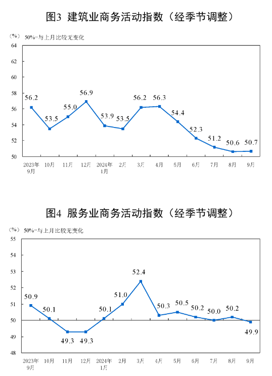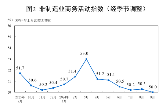 9月份,非制造业商务活动指数为50.0%,比上月下降0.3个百分点,位于临界点。