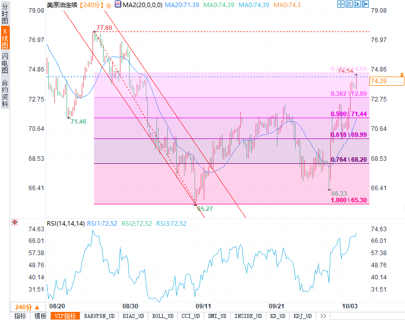 周五(10月4日),国际油价在早盘交易中保持平稳,市场处于观望态势。尽管中东地区紧张局势加剧和全球石油供应充足的前景对油价构成了不同的影响,油市整体波动不大。原油市场短期内仍维持看涨基调,价格在中东局势的推动下表现出积极反弹迹象。但需注意关键技术位的突破情况,尤其是今晚非农数据公布后,油市将可能迎来更大的波动。