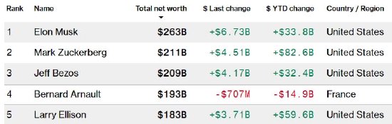 CEO埃隆·马斯克,后者身价高达2630亿美元。