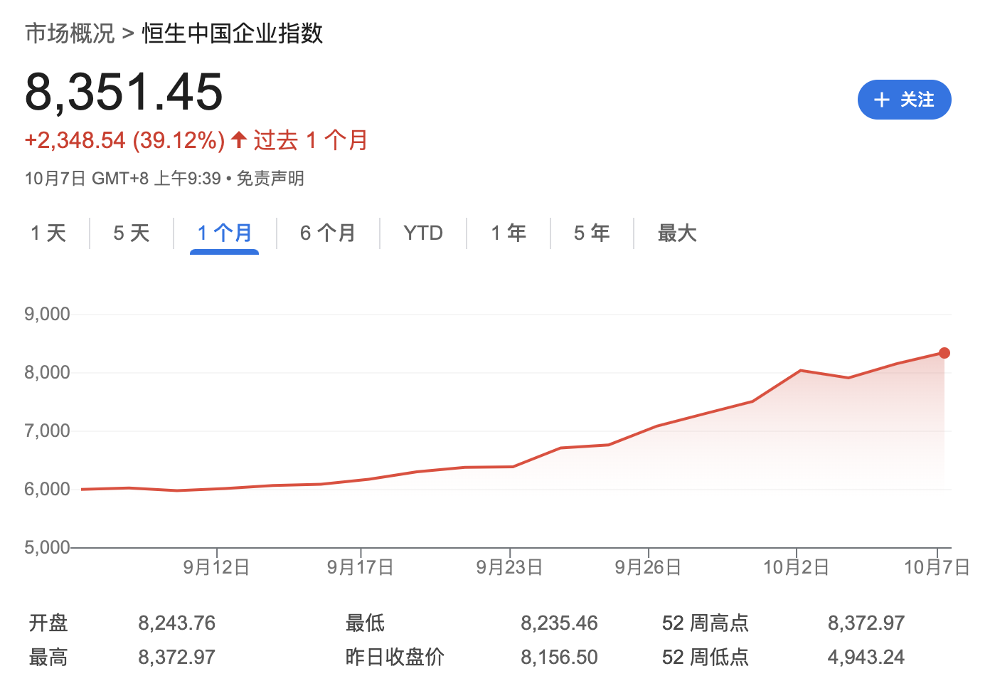 但值得注意的是,中国股市短期内经历的史诗级上涨,在市场上仍引发了不少讨论声。比如恒生中国企业指数在过去一个月的涨幅已经超过30%,在彭博跟踪的全球90多个股指中排名第一。