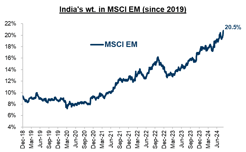Kasi表示,印度股市在新兴市场中是第二大超配的市场。更重要的是,印度在所有新兴市场中的权重排名第二。