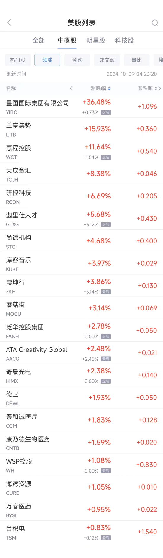 领涨中概股列表: