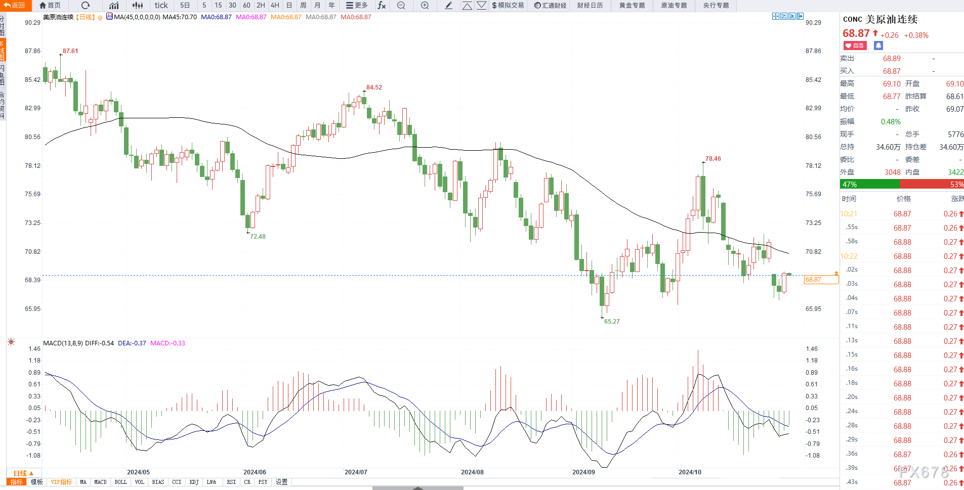 周三,10月31日,亚盘时段,美原油延续涨势,主要是美国原油库存意外下降,汽油库存下降至两年低点,且大幅低于前值,同时有报道称OPEC+可能推迟石油增产计划,一定程度上支撑油价走强,对于汽油库存的意外下行,暗示了潜在需求的增长预期,不排除油价继续走高的可能性。 日内需要关注美国初请失业金人数,以及9月核心PCE物价指数年率,是否提振油价继续走强。