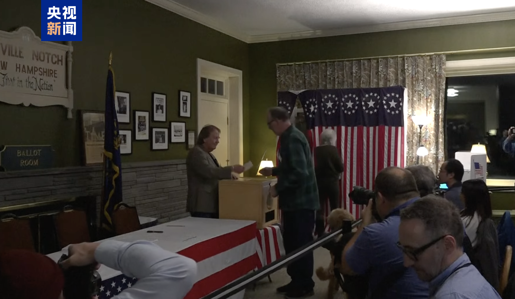 美国东部时间11月5日零时,新罕布什尔州小镇迪克斯维尔山口的选民率先开始投票,这标志着第60届美国总统选举投票正式开始。(总台记者 张颖哲)