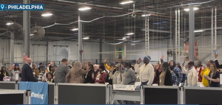 当地媒体画面显示,费城计票点的工作人员在周二开始统计选票前举行集体宣誓仪式。其所在的宾夕法尼亚州是今年大选的关键摇摆州,该州从选举日早上7点开始清点邮寄选票和缺席选票。