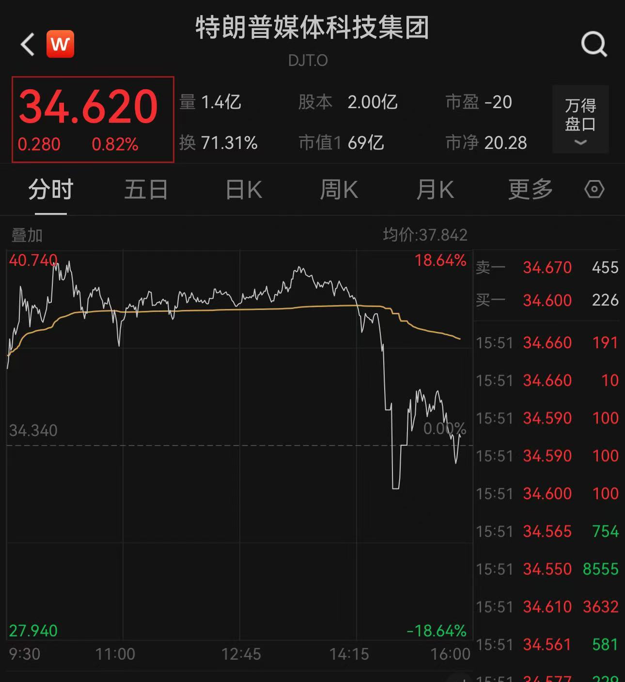 04:50 【特朗普媒体科技集团尾盘跳水】
