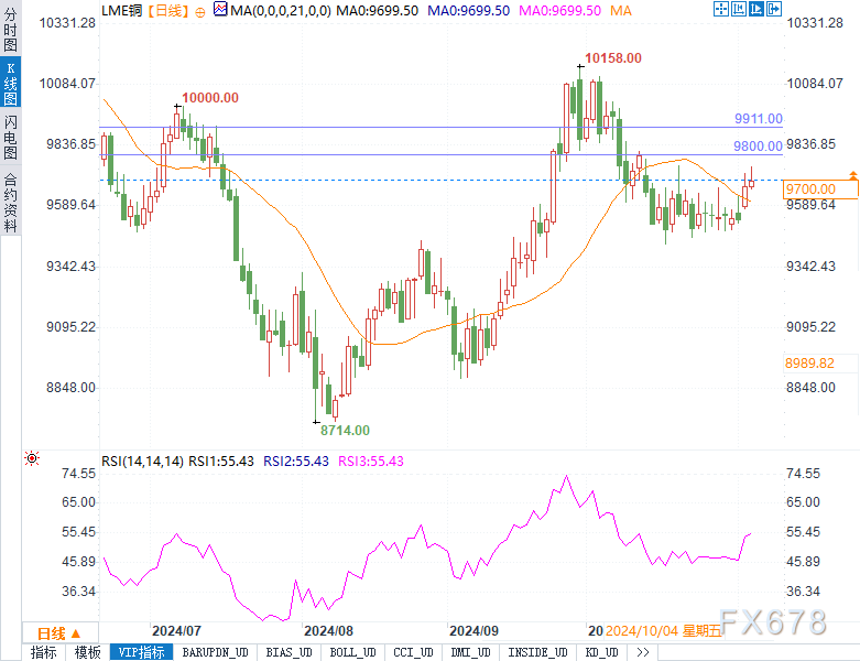 从技术面来看,伦敦铜价已经接近重要的9800美元/吨阻力位。若短期内突破该水平,铜价有望冲击10000美元的心理关口。然而,若大选后的市场情绪不如预期般乐观,铜价可能出现短期调整。因此,交易者在目前位置应谨慎对待,密切关注全球宏观风险事件的进展。