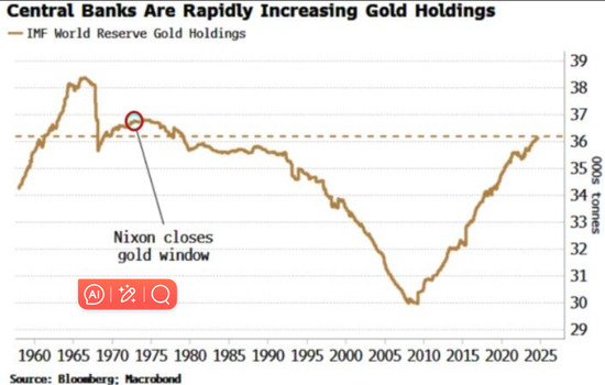近几个月来,黄金强劲反弹。需求主要受新兴市场和国家央行增持黄金的推动。据世界黄金协会估计,全球央行在2023年增加了1037吨黄金,这是历史上第二高的年度购买量。目前,它们持有的黄金超过36000吨,接近1972年尼克松关闭“黄金窗口”后的峰值。