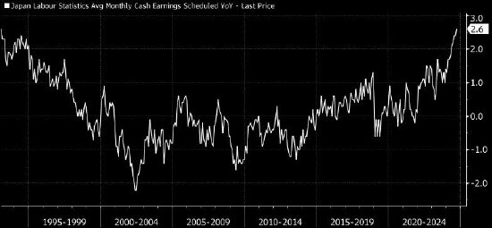 日本工人的基本工资创下三十多年来的最大增幅,支持了日本央行对经济仍在复苏轨道上的观点,并支持未来几个月加息的前景。