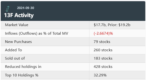 根据美国证券交易委员会(SEC)披露,桥水基金(Bridgewater Associates)递交了截至2024年9月30日的第三季度持仓报告(13F)。