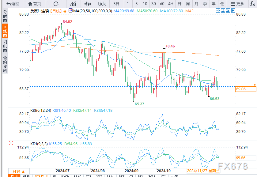 周三(11月27日)欧盘时段,WTI油价小幅上涨。美国股市周四因感恩节休市,预计交投清淡,令逢低卖出或逢高买入的投资者保持谨慎。