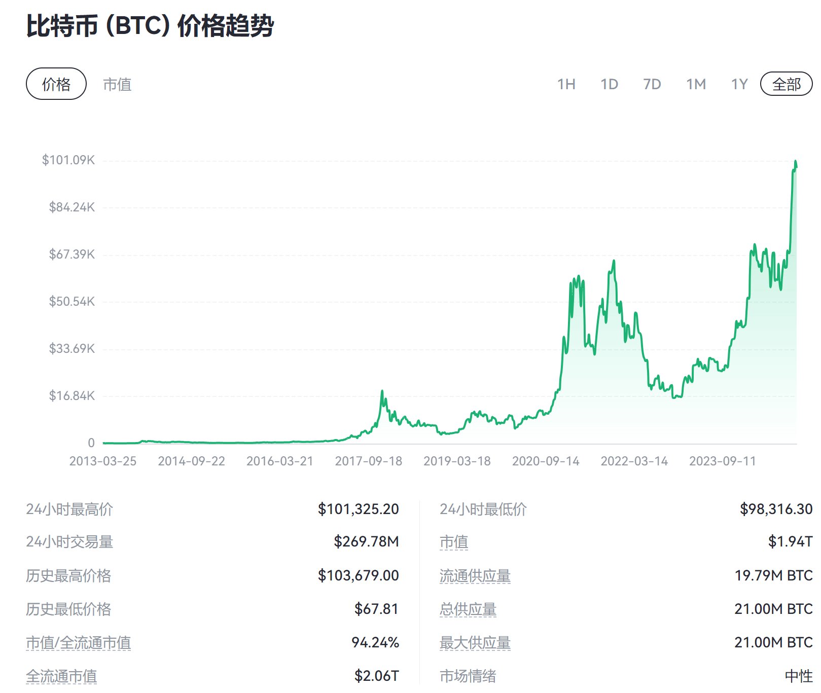 价格一度突破10万美元大关,带动部分主流币翻倍上涨,比特币涨势势如破竹,币圈已经杀红了眼。