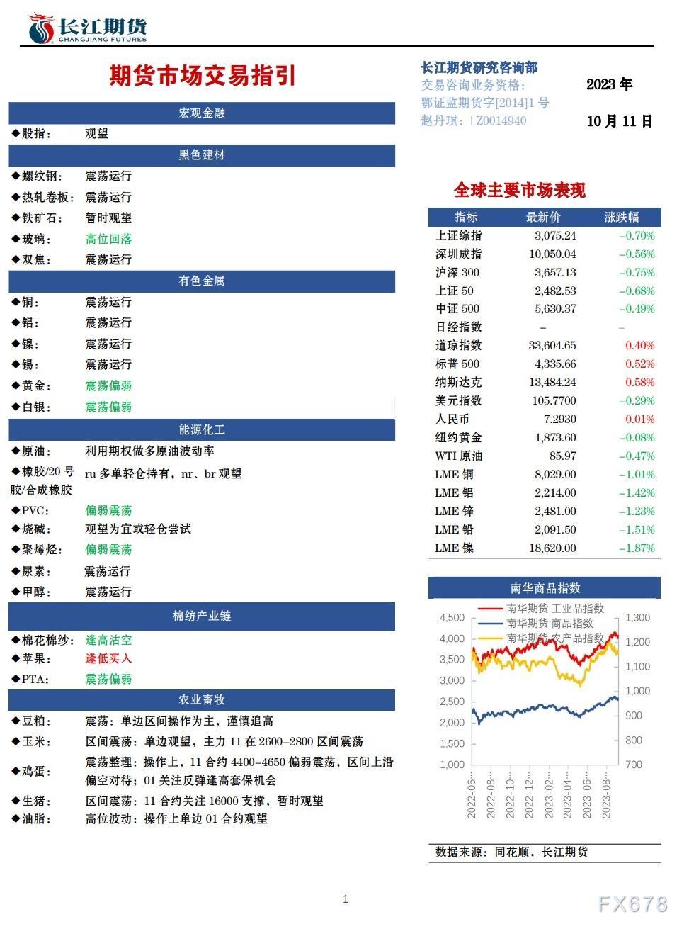 FXTM富拓集团资讯长江期货10月11日期货市场交易指引