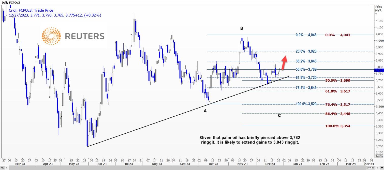 棕榈油可能进一步反弹至3813-3819林吉特范围
