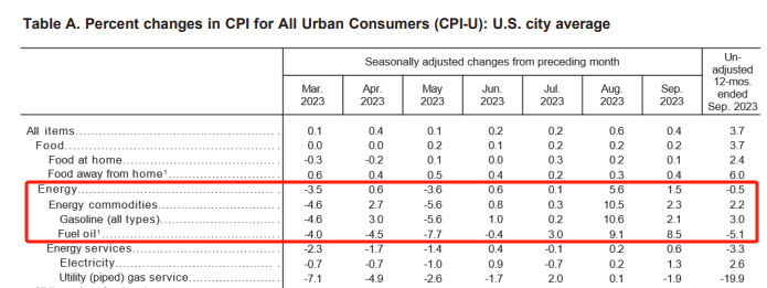 这使得美国9月未季调CPI同比增幅录得3.7%,与8月一致,市场原先预期这一数字会放缓至3.6%。