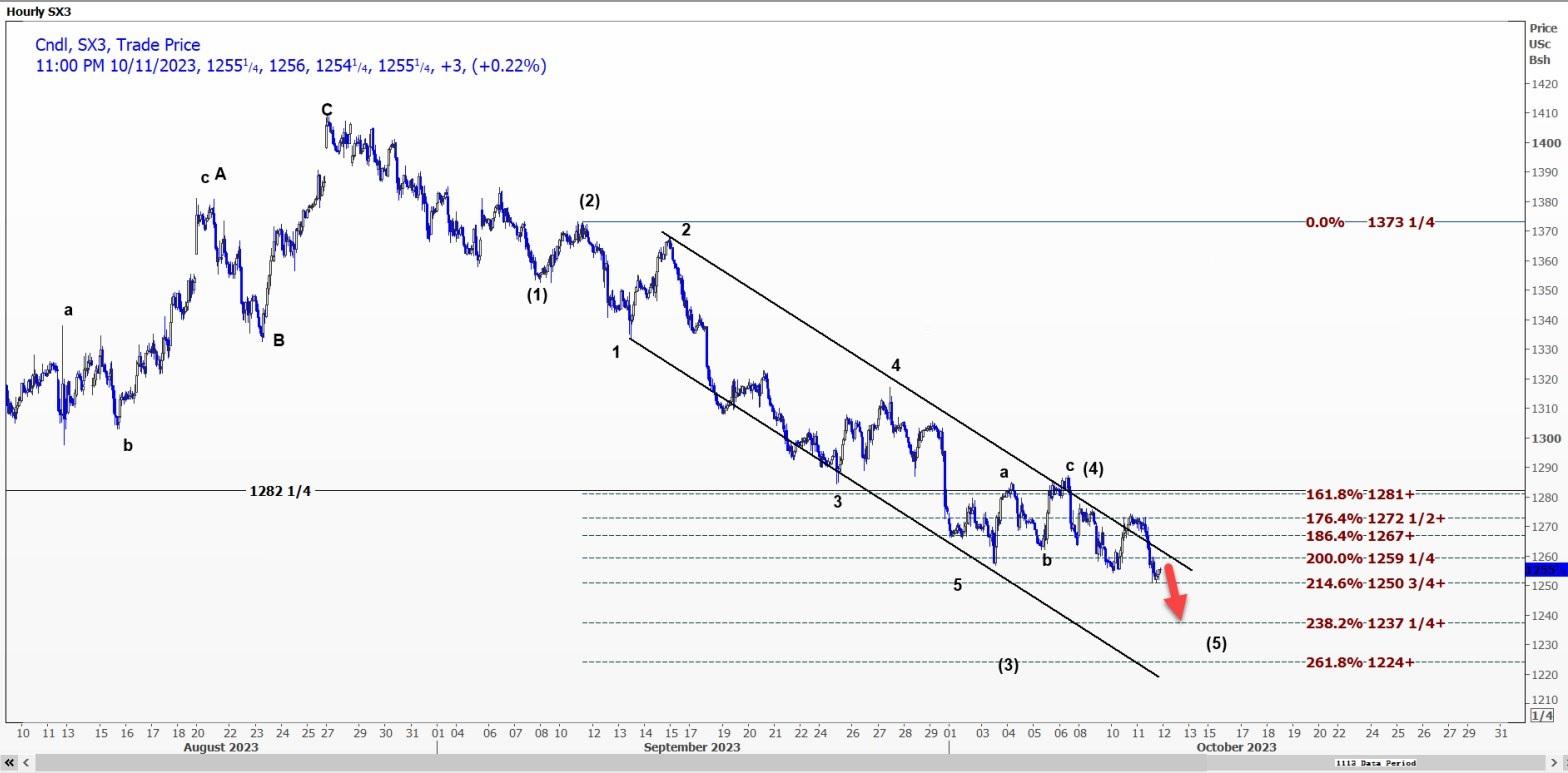 汇通网10月12日讯—— CBOT大豆11月合约SX3可能会重新测试1250.75美分/蒲式耳的支撑位,跌破该支撑位可能导致跌至1237.25美分/蒲式耳
