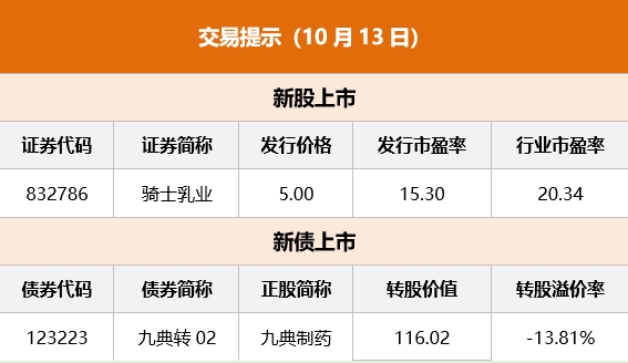 龙虎榜:10月12日,日内上榜龙虎榜个股中,资金净流入最多的是汇顶科技,三日净流入3.51亿元。机构参与龙虎榜中个券共涉及23只(1只可转债),其中10只个券(1只可转债)被机构净买入,张江高科被买入最多,为2.81亿元。另外13股被机构净卖出,华力创通被卖出最多,为7581.83万元。