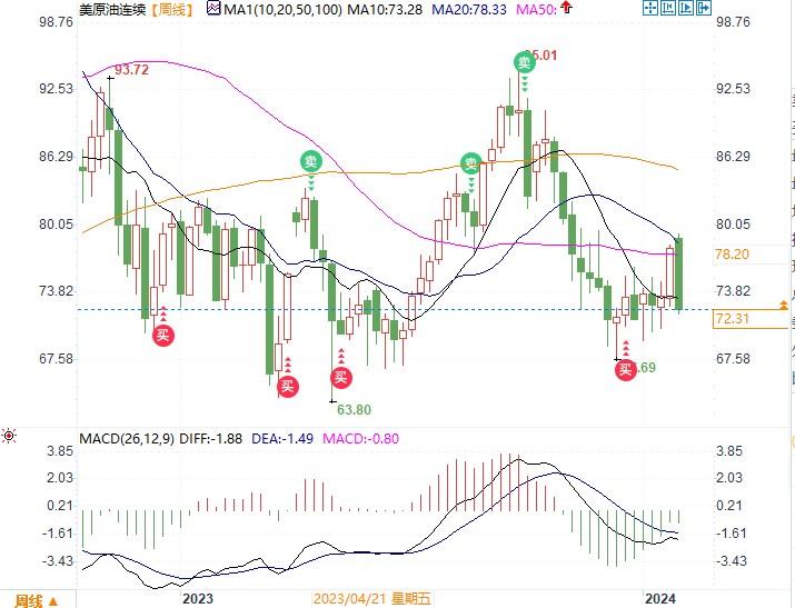 周五(2月2日),油价下跌超2%。美国就业数据降低即将降息的可能性,加剧了对原油需求的担忧,中东紧张局势可能有所缓解也导致价格下跌。 布伦特原油连续合约收盘报77.61美元/桶,跌幅1.31%。