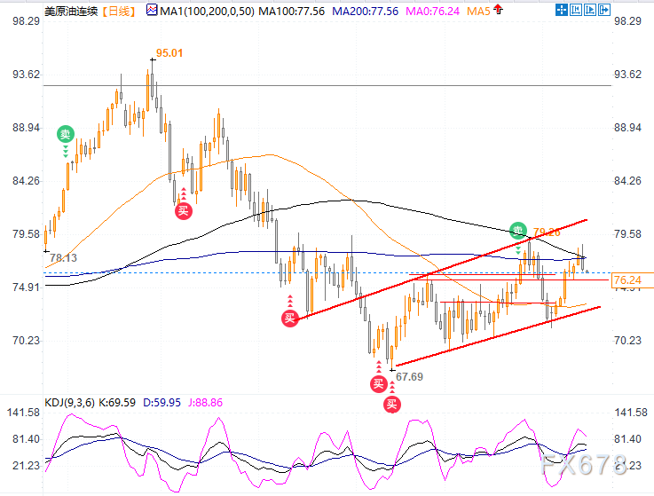 油价周四(2月15日)亚洲时段延续昨日的疲软态势,美WTI原油日内现跌逾0.4%创三天低点至76.18美元/桶一线,因油价昨日冲高回落并最终收跌,日图级别刚好收到100日均线及200日均线粘合处的联合压制。此外,此前有数据显示,美国原油库存增幅远超预期,引发了对美国需求的担忧。
