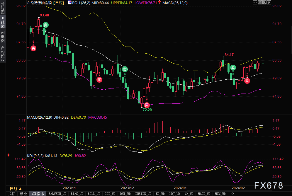 布伦特原油价格在周一(2月19日)的短暂交易中小幅收高,原因是中东紧张局势带来的供应担忧挥之不去,但需求减弱的迹象抵消了这一担忧。 瑞银分析师Giovanni Staunovo指出,受美国总统日假期影响,油市交易量低于往常。由于假期的原因,布兰特原油期货也比往常提前结算。 布伦特原油期货上涨0.09美元,报收于每桶83.56美元。3月份交割的美国西德克萨斯中质油(WTI)期货周一上涨0.30美元,至每桶79.49美元。该合约周一没有结算,将于周二到期。4月交割的WTI合约周一下跌0.11美元,至每桶78.35美元。