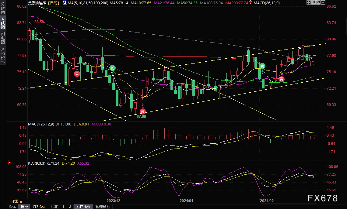 周四(2月22日)亚市盘初,美原油窄幅震荡,目前交投于78.04美元/桶附近。油价周三(2月22日)上涨了1%,因中东地缘政治局势紧张,交易商评估近期供应紧张的迹象。 美国原油期货周三上涨0.87美元,或1.1%,收报每桶77.91美元;布伦特原油期货上涨0.69美元,或0.8%,收报每桶83.03美元。 近月原油合约较远月合约升水处于数月高位,这种市场结构被称为逆价差结构,被认为是市场供应紧张的迹象。 瑞银集团分析师Giovanni Staunovo说,跨月合约价差显示市场供应趋紧,并补充说,上周阿姆斯特丹-鹿特丹-安特卫普交易中心(ARA)的原油库存下降,而富查伊拉的成品油库存下滑。 此外,也为市场提供支撑的是,出现了美国炼油厂结束维护恢复生产的迹象,此前炼油厂开工率降至了2022年12月以来最低,刺激原油库存增加。 Price Futures Group分析师Phil Flynn在一份报告中说,美国股市遭大幅抛售抑制了投资者的风险偏好,限制了油价涨幅。 科技股重镇纳斯达克指数领跌华尔街,投资者为Nvidia(辉达/英伟达)备受瞩目的财报做准备。 本交易日将迎来EIA原油库存系列数据和一大波欧美PMI数据,还有好几位美联储官员发表讲话,投资者需要予以关注。