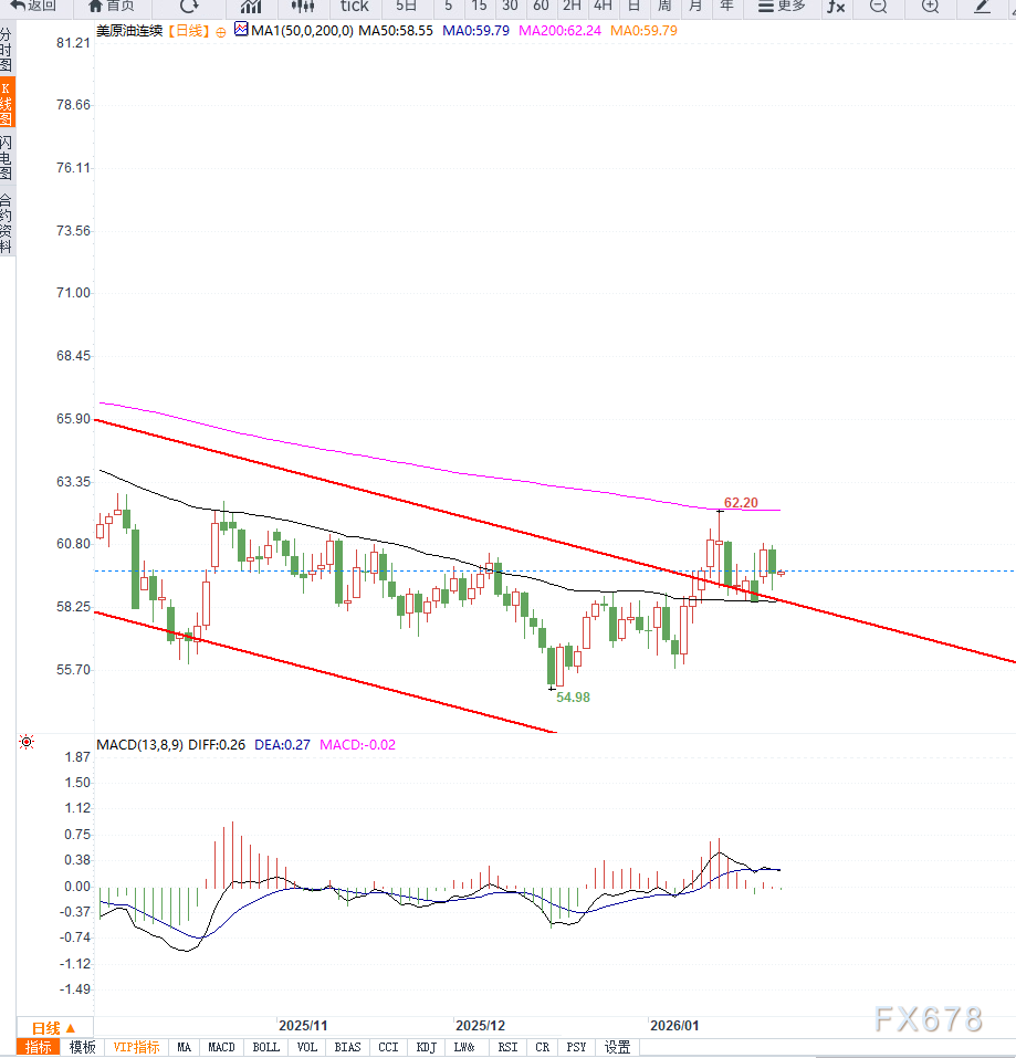 国际原油市场周内显著承压。WTI原油周五亚盘时段小幅震荡,交投于59.70美元附近,重回60美元整数关下方,库存压力上升以及俄乌局势缓和预期成为拖累油价的主要因素。 在地缘政治层面,乌克兰总统泽连斯基表示,美国、俄罗斯和乌克兰将于周五举行三方团队会议。该消息提振了市场对俄乌停战取得实质性突破的预期,削弱了此前油价中所包含的地缘政治风险溢价。 基本面方面,美国能源信息署(EIA)公布的最新数据显示,上周美国原油库存增加约360万桶,明显高于市场此前预期的下降50万桶。同时,汽油库存增加约600万桶,连续第十周录得增长,并触及2021年以来最高水平;