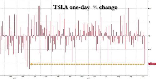 事实上,近几个月来,特斯拉首席执行官马斯克就已多次警告称,高利率可能会削弱电动汽车需求。而美债收益率的飙升也在周四与表现平平的特斯拉最新财报一同打击了该行业的股价。特斯拉股价当天收盘下跌9.3%,因为一些分析师质疑该公司还能否保持多年来与其他汽车制造商呈现巨大差异的超速增长。