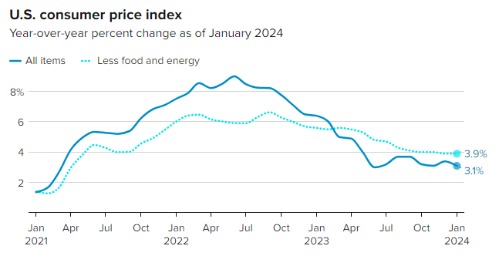 澳新银行则指出,“我们预计2月份核心CPI环比将上升0.3%,能源价格上涨将推动总体CPI环比上升0.5%。1月份超级核心和房租通胀曾意外上行,预计2月份将出现一定程度的逆转,但超级核心价格的季节性波动仍在持续,这表明逆转幅度可能不大。尽管主要由于劳动力供应的增加,劳动力需求在过去一年有所放缓,但仍然存在相当大的净过剩需求。尽管美联储官员对过去一年通胀率的缓解感到鼓舞,但通胀率仍然过高,不同通胀组成部分的进展也不平衡。在考虑降息之前,FOMC官员需要对通胀率重返2%有更多信心。”