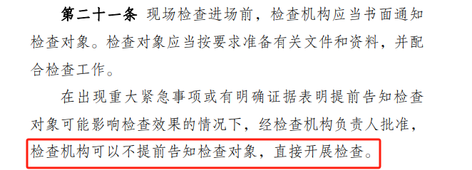 二是增加了不提前告知直接开展检查的机制;