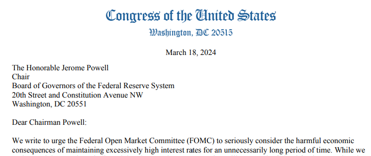 FXTM富拓集团资讯美国会议员公开致信鲍威尔 要求美联储制定明确的降息时间表