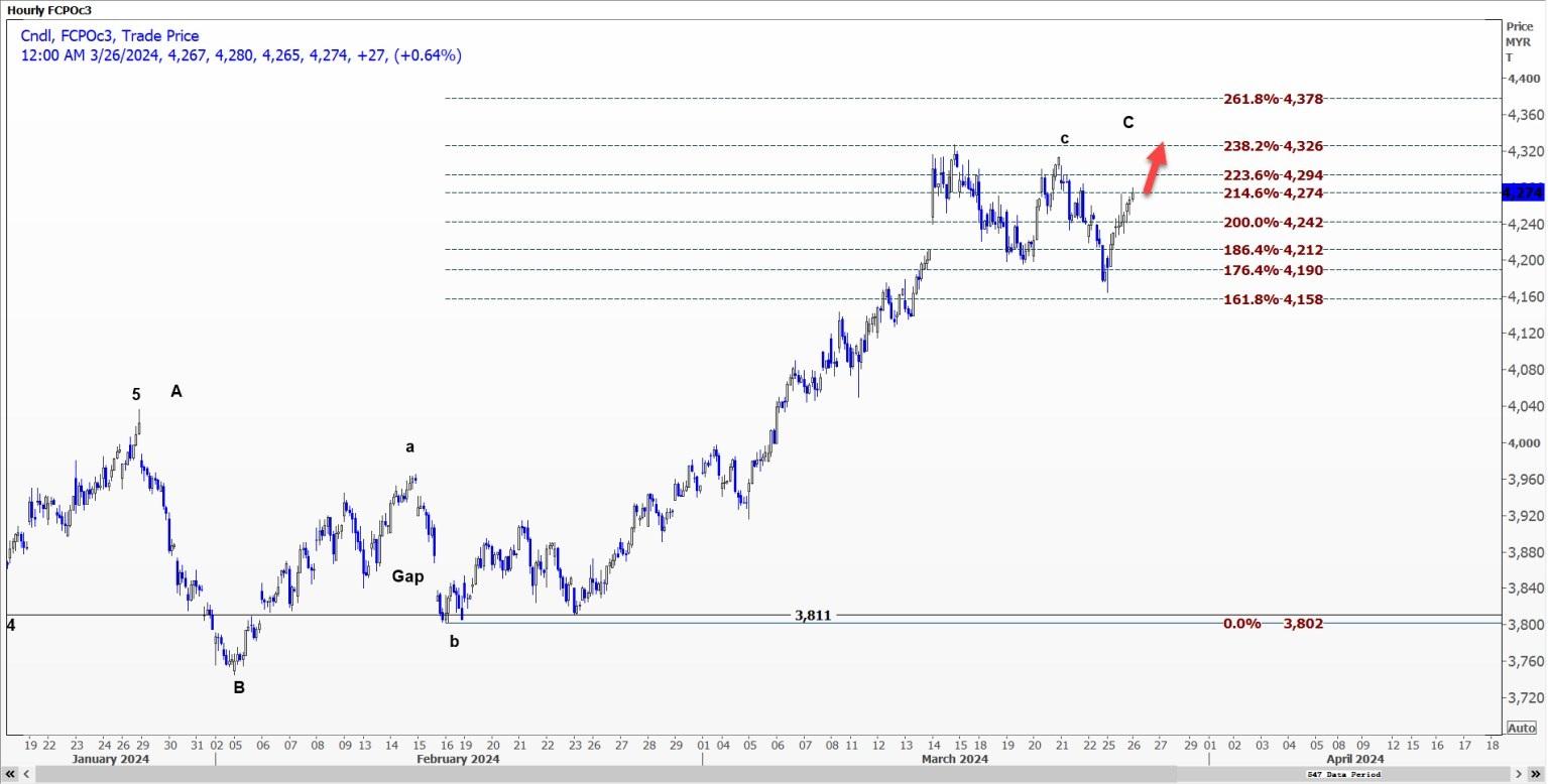 为了确认延续,该合约需要突破4314林吉特。如果失败,则可能意味着3月15日高点4327林吉特的回调不完全。