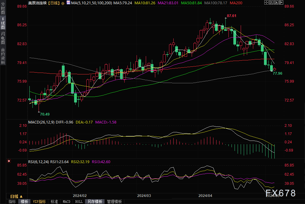 5月6日亚洲时段,国际油价震荡反弹,守住了100日均线关键支撑,因市场预计OPEC+可能在6月延长减产;另外,哈马斯周日重申要求以结束战争换取人质获释,而以色列总理内塔尼亚胡断然拒绝了这一要求,加沙停火的前景似乎渺茫,这也给油价提供支撑;此外,沙特上调6月对亚洲、西北欧和地中海地区的原油官方售价。